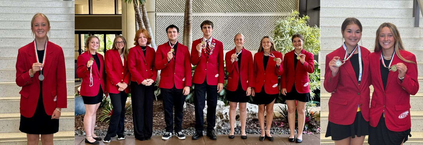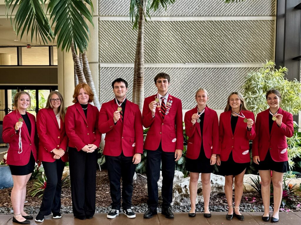 The Midvale FCCLA Chapter traveled to Orlando Florida this summer to represent Idaho at the National FCCLA Convention. Eight members qualified for Nationals and six of those eight medaled during competition! Receiving Gold were Kearney Adams, Stella Warren, Danner Morris, Kali Waggoner & Morgan Tabert. Reese LaFollette earned a silver medal for her competition. Congratulations to the participants and advisor Mrs. LaFollette for a job well done! Visit the FCCLA Page to see more photos and adventures from their trip!